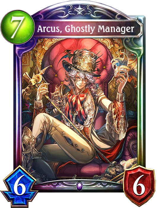 Fanfare: Give your leader the following effect - Whenever you play a follower that originally costs 3 play points or less, destroy that follower and summon X Ghosts. X equals the original cost of that follower. (This effect is not stackable and lasts for the rest of the match.)