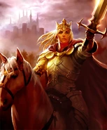 | “ | Follow the point of his sword off into the distance to where the promised land lies.