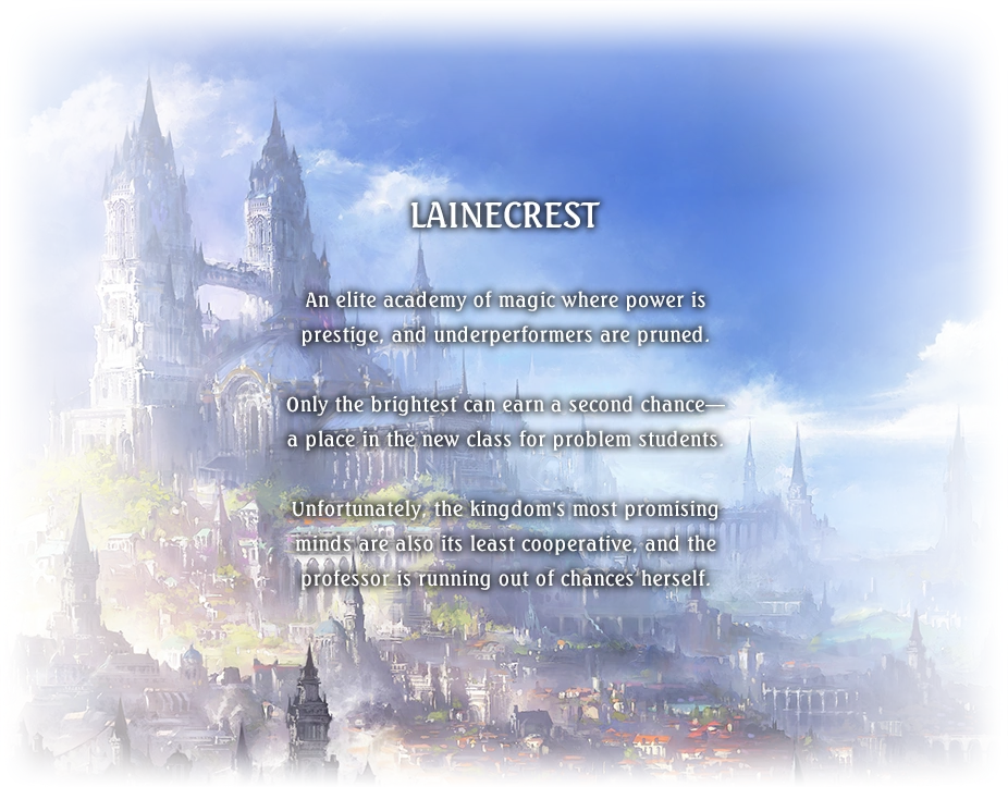 The story opens up with a girl named Alicia running late to the morning orientation. She just barely arrives and professor runs down about the orientation entails and how important those within Laincrest come to be. She explains the East Tower supports the normal curriculum while the West Tower has the independent study track with Lyelth and Lilium found within it. As the professor concludes the tour, Alicia approaches a shy Castelle in hopes to be her friend. Unfortunately, later that night, Weiss kills Alicia and word reaches Verdilia. Before she can ask for details, she gets assigned to teach the problem students of Lyelth and Amaryllis while also investigating Alicia's disappearance.