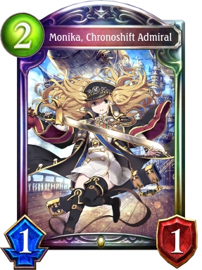 Last Words: Rally (10) - Give your leader the following effect: At the start of your next turn, summon a Monika, Chronoshift Admiral, evolve it, then remove this effect. (This effect is not stackable.)