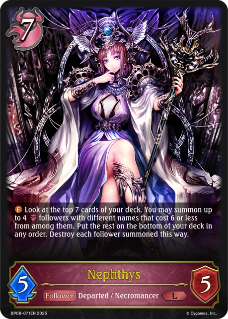 Nephthys is a follower for the Abysscraft class in Shadowverse: Evolve.