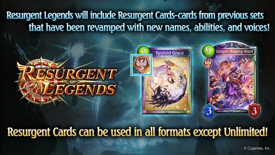 Resurgent cards are a sub-type of all cards introduced in Resurgent Legends. Resurgent cards feature the same characters and illustrations as previously released cards, but have different names, abilities, and voice lines. They are indicated by a special icon and can be used in all formats except Unlimited.