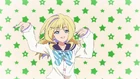 This ending is similar to Haruhi Suzumiya’s Hare Hare Yukai in the beginning were Tsubasa (Haruhi), Ren (Mikuru) and Shion (Yuki) are dancing on the yellow background, and the whole platform was yellow and polka dotted instead of the black platform were Haruhi, Yuki and Mikuru danced on.