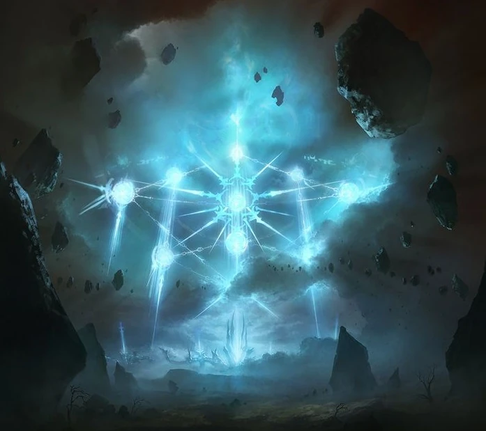 The Morning Star (災いの樹 wazawai no ki, lit. "Tree of Disaster; Tree of Calamity"), also known as the Tree of Woe in the anime, is an ominous symbol that appears in the sky above worlds when the world is set to be destroyed by a Keeper. When the time comes, the symbol becomes a door that the Keeper walks through to end the world.